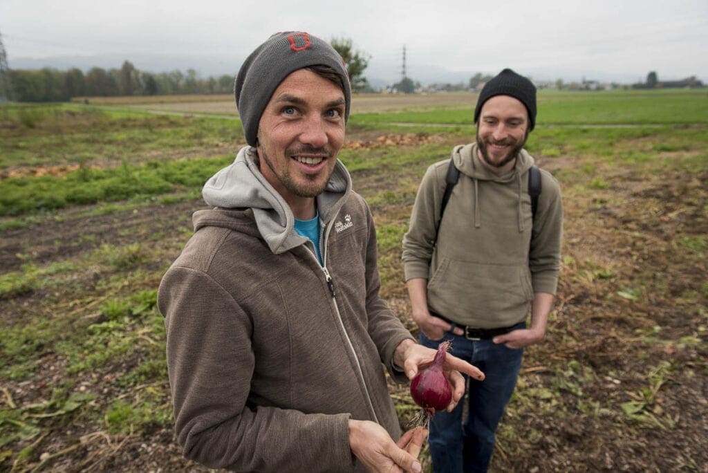 Fast fünf Tonnen Zwiebeln haben Matthias und sein Team in diesem Herbst geerntet. Und wir haben mit eigen Augen gesehen, wie gesund und lebendig der Boden nach der Ernte ist. Im Gespräch mit Matthias wurde uns nochmals bewusst, dass diese Art von Landwirtschaft nicht nur geschmackvolle Lebensmittel hervorbringt, sondern auch fundamentale Umweltprobleme angeht: Für Insekten und Mikroorganismen sind die Felder von SlowGrow richtiggehende Oasen in der Wüste der chemisch belasteten Monokulturen des Schweizer Mittellands. Dabei ermöglicht der viele Humus nicht nur einen ressourcenschonenden Anbau, sondern ist auch ein effizienter CO2-Speicher. Deshalb freuen wir uns sehr, dass wir euch diese Zwiebel anbieten dürfen, die nicht nur schmeckt, sondern auch gut fürs Klima ist.