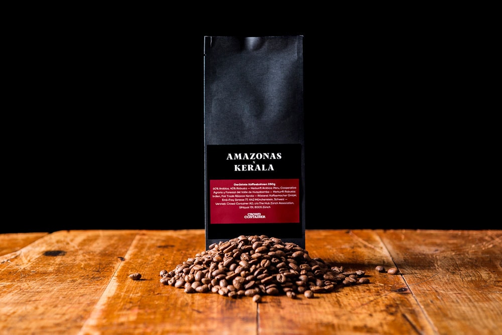 - Geschmack: Während die «Arabica» Bohnen aus Peru fruchtige Noten und Süsse in den Kaffee bringen, sorgt der «Robusta» aus Kerala für eine schöne Crema, Intensität und Körper. Wir rösten diesen Mix etwas dunkler als den AMAZONAS Kaffee: für alle Liebhaber*innen von kräftigem Kaffee mit einem Hauch Italianità.