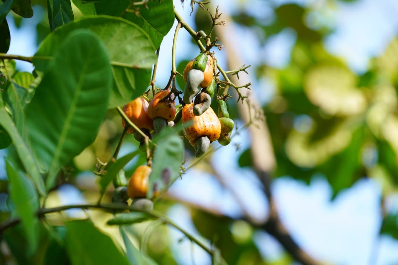 • Anbaumethode: Anbau in mehrstufigen Agroforstsystemen, ohne den Einsatz von Pestiziden. Cashewkerne wachsen zusammen mit einer Frucht, dem Cashewapfel, einzeln am Cashewbaum. Wenn der Apfel vom Baum fällt, muss der Kern schnell eingesammelt und getrocknet werden, um eine gute Qualität sicherzustellen.