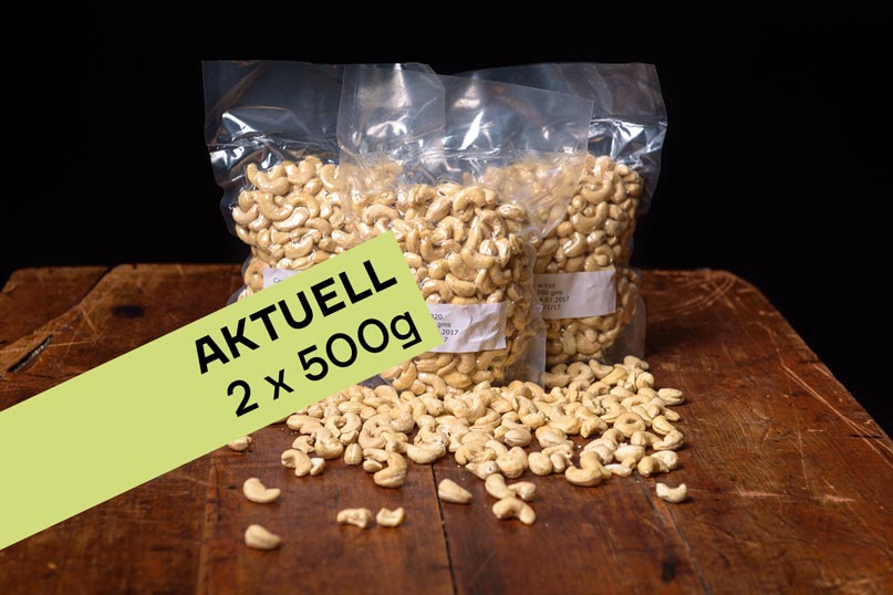 • Geschmack: Die Cashewkerne haben einen milden, leicht süsslichen Geschmack. Sie sind knackig, haben aber eine deutlich weichere Konsistenz als andere Kerne oder Nüsse.