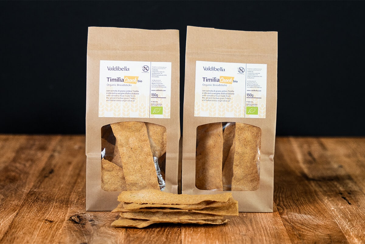 - Geschmack: Die «Timilia» Crock haben einen kräftigen, leicht nussigen Geschmack. Dieses knusprige Ofengebäck, das eine unregelmässige, längliche Form hat, vereint den ganzen Duft und die Nährstoffe des «Timilia» Hartweizens.