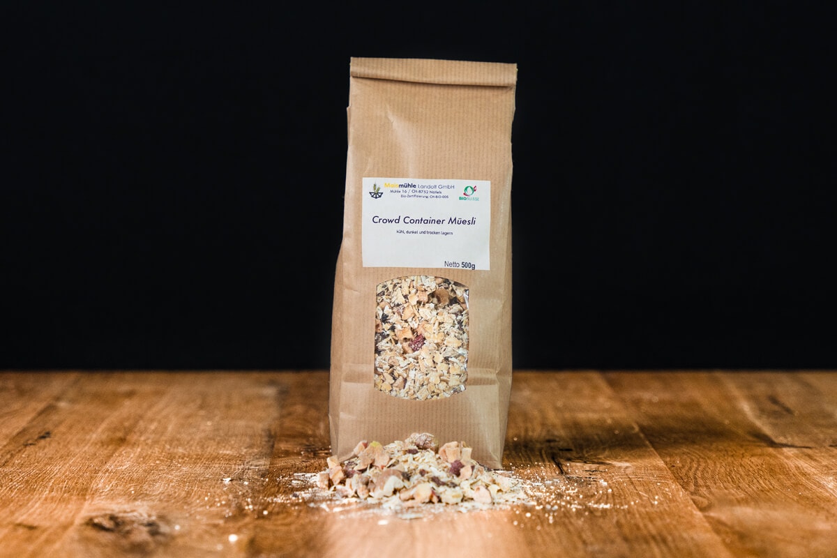 - Geschmack: Ein spannendes Müesli mit Zutaten von Produzent*innen aus unserem Netzwerk.