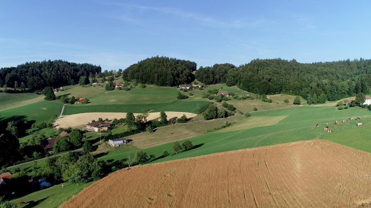 - Produzent*innen: Simone Ackermann betreibt auf 13 Hektaren eine sehr vielfältige Landwirtschaft: Auf den ausgedehnten Wiesen wachsen viele Hochstammobstbäume. Hier finden die Kühe genug Nahrung, um ohne zugekauftes Kraftfutter durchs Jahr zu kommen. Sie produzieren den Mist, welcher das Feld für den Mais-, Getreide- und Kartoffelanbau fruchtbar macht. Zwei Pferde und ein Traktor helfen beim Bestellen der Felder. Daneben gehören auch ein Hühnerstall und ein grosser Gemüsegarten zum Familienbetrieb. Der «Quellenhof» wird von Simone Ackermann sowie einem Lehrling nach biologisch-dynamischen Prinzipien bewirtschaftet. Dabei versuchen sie, die Kräfte der Natur zu nutzen und die Kreisläufe auf dem Hof aktiv zu gestalten.
