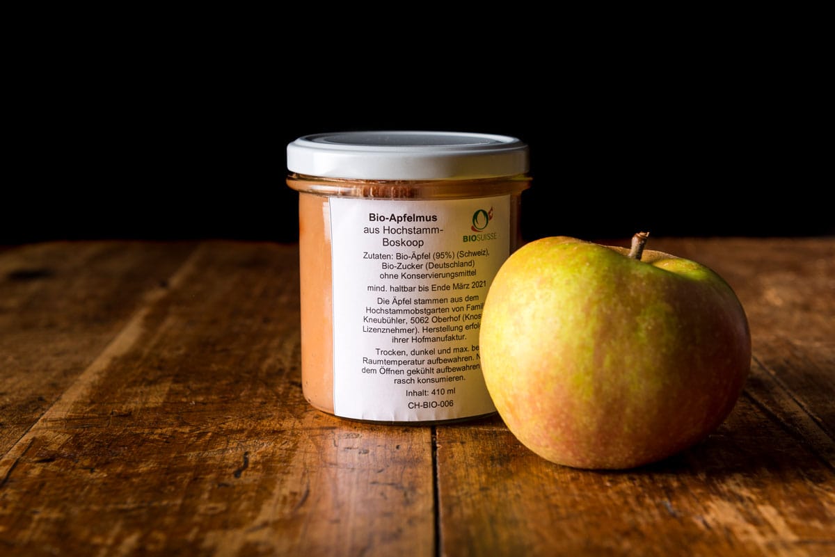 - Qualitätsmerkmale: Es handelt sich um sortenreines Apfelmus: Nur beste, ausgereifte biologische Hochstamm Äpfel der Sorte «Boskoop» werden von der Familie Kneubühler in kleinen Chargen handwerklich verarbeitet.