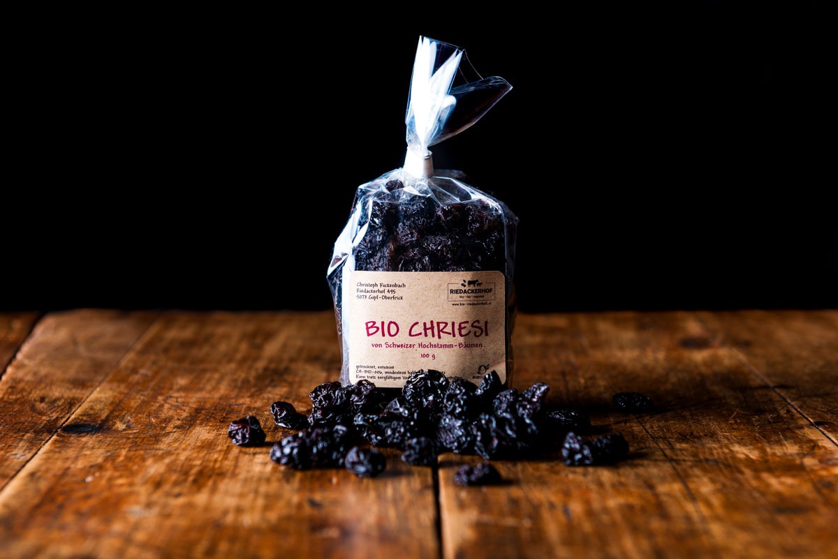 - Qualitätsmerkmale: 7 Kilo frische Kirschen ergeben 1 Kilo Dörrkirschen. Dieses wertvolle Produkt wird aus Chriesi von Hochstammbäumen hergestellt, deren Erhaltung als Lebensraum für viele bedrohte Tierarten ökologisch von grosser Bedeutung ist.