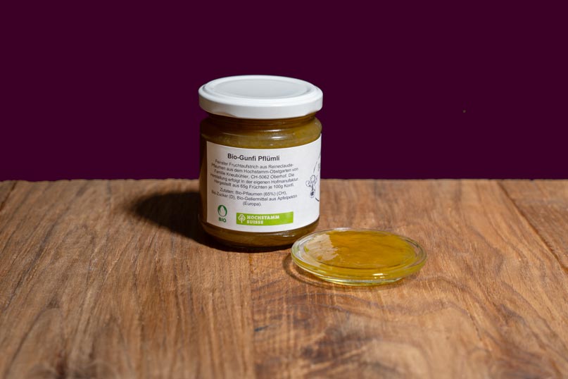 Ein süss-sauerer Genuss mit ökologischem Mehrwert: Der Geschmack der grünen Hochstamm Pflümli macht aus dieser Konfi einen seltenen Genuss!