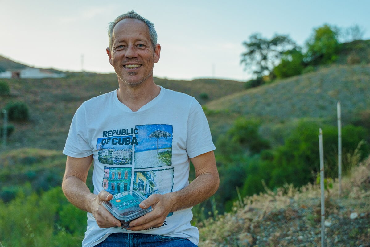 «Moscatel de Málaga» Weinbeeren verfügen über ein sehr süsses, saftiges Fruchtfleisch, denn sie enthalten mehr Wasser als handelsübliche Rosinen. Die feinen Beeren werden handverlesen und ohne weitere Konservierungsstoffe an der Sonne getrocknet. Es handelt sich um eine der weltweit ältesten Traubensorten, die für dieses Produkt von María und Carlo auf ihrem Biohof Huerta la Perucha angebaut wird.