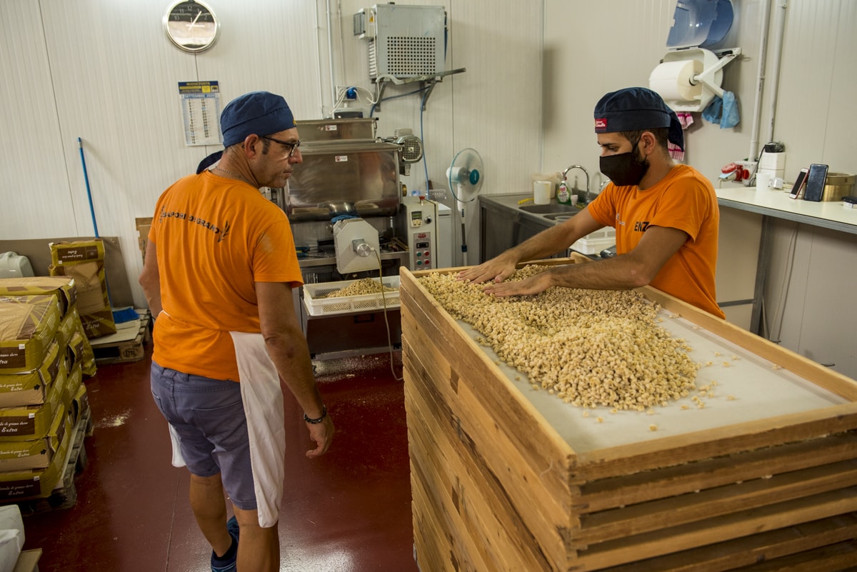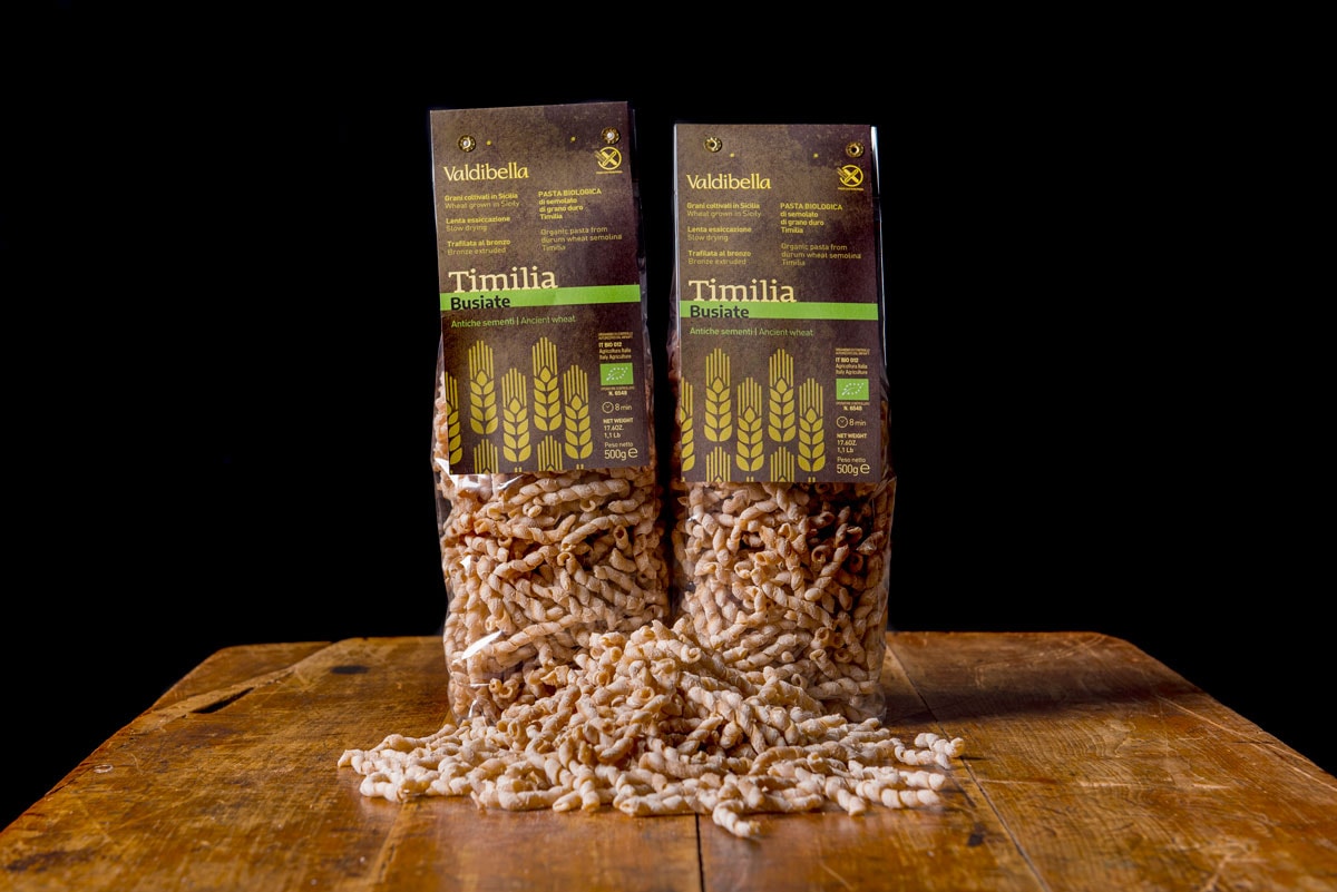 - Produzent*innen: Der Hartweizen wird von verschiedenen Mitgliedern der Kooperative Valdibella angebaut. Hier findest du einen Blog-Beitrag zum «Timilia»-Anbau. In der Molino Paratore wird das Korn gemahlen. Alberto Stallone von Sapori di Grano ist darauf spezialisiert, das Korn in einem schonenden Verfahren zu dieser edlen Pasta zu verarbeiten. Caterina Lo Bocchiaro von Valdibella sagt: «Alberto Stallone macht eindeutig die besten Busiate in ganz Sizilien!» Valdibella verwendet das «Addio Pizzo» Label und deklariert damit, dass sie keine Schutzgelder an kriminelle Organisationen zahlen.