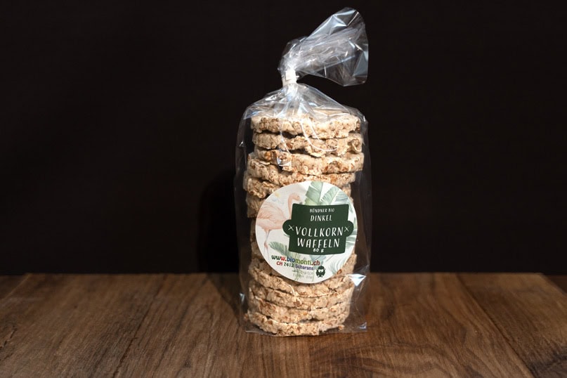 Ein leichter Snack mit urchigem Geschmack! Diese Waffeln werden von der Familie Buchli direkt auf ihrem Hof im Domleschg aus 100% biologisch angebauten «Ostro» Dinkelkörnern hergesellt.