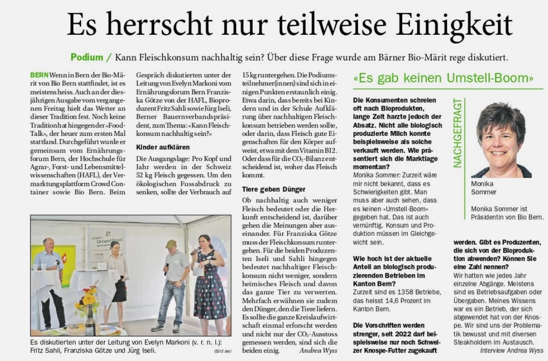 - BauernZeitung, September 2023, FoodTalk Bern: Es herrscht nur teilweise Einigkeit | jpg